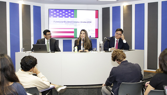 Lila Abed ofreció a la comunidad IBERO la conferencia ‘Elecciones 2024: el futuro de la relación bilateral entre México y Estados Unidos’, organizada por el director del Departamento de Estudios Internacionales (DEI) de la IBERO, el Dr. Luis González Villanueva, en colaboración con el académico e investigador del mismo, Dr. Abelardo Rodríguez Sumano.