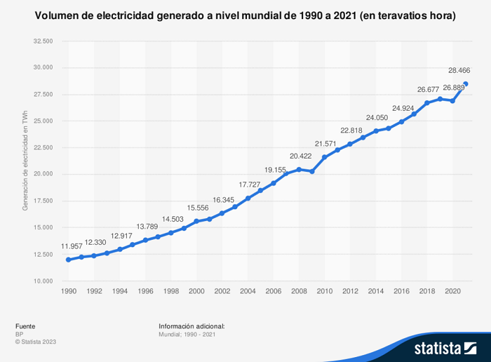 La demanda energética mundial es un dato que varía constantemente debido a diversos factores, como el crecimiento económico, la población y los avances tecnológicos. Según el informe 2022 de la Agencia Internacional de Energía (AIE), la demanda mundial de energía fue de aproximadamente 26,190 teravatios-hora (TWh) durante todo el año.