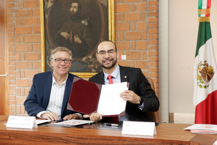 • El Dr. Ernesto Hugo Stein, representante del Banco Interamericano de Desarrollo (BID), y el Dr. Luis Arriaga Valenzuela, S. J., Rector de la IBERO Ciudad de México. (Foto: Alberto Hernández)