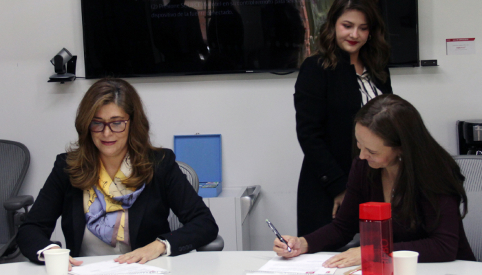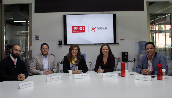Durante la ceremonia de la firma de la Carta de Intención estuvieron presentes por la IBERO, Maestra (Mtra.) Ericka Liliana Enríquez Montaut, Directora de Educación Continua; Licenciado (Lic.) Diego García Núñez, Coordinador de Comercialización y Comunicación; Maestro (Mtro.) Carlos Medina Gual, Coordinador de Academia de Educación Continua; Maestra María Teresa Álvarez Zambrano, Directora de Spira México, y Lic. Erik Ortiz Mendoza, Marketing Leader de Spira México.