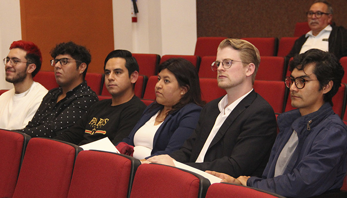 En el presídiumdel eventoestuvieron elDr. Andrés Molano Jiménez, Director del DEII; laMtra. Patricia Gutiérrez Franklin, Coordinadora de Relaciones Estratégicas con Egresados y Egresadas; Mtro.Diego Martínez de Velasco Amado, Director de Emprendimiento, Talento y Desarrollo Empresarial; Dr.Erick René Bojorges Valdez, Coordinador de Ingeniería Biomédica;Mtro. Andrés Tortolero Baena, Coordinador de Ingeniería en Ciencia de Datos;Mtro.Jorge Rivera Albarrán, Coordinador de Transformación Digital yMtro.Jorge Rodríguez García, Coordinador de los Programas Académicos de Ingeniería Electrónica.