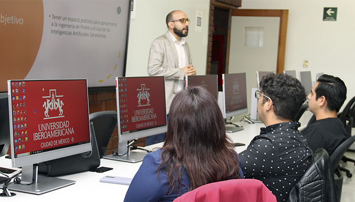Entre las actividades,elDirectordel DEIIde la IBERO,Doctor (Dr.)Andrés Guillermo Molano Jiménez,impartió un tallera las y los egresados, dondeles compartió un modelo para interactuar con herramientas generativas deinteligencia artificialpara verificar resultados de proyectos de ingeniería, comparar tecnologías, crear cronogramas, traducir documentación, identificar riesgos o generar ideas para crear nuevos productos.