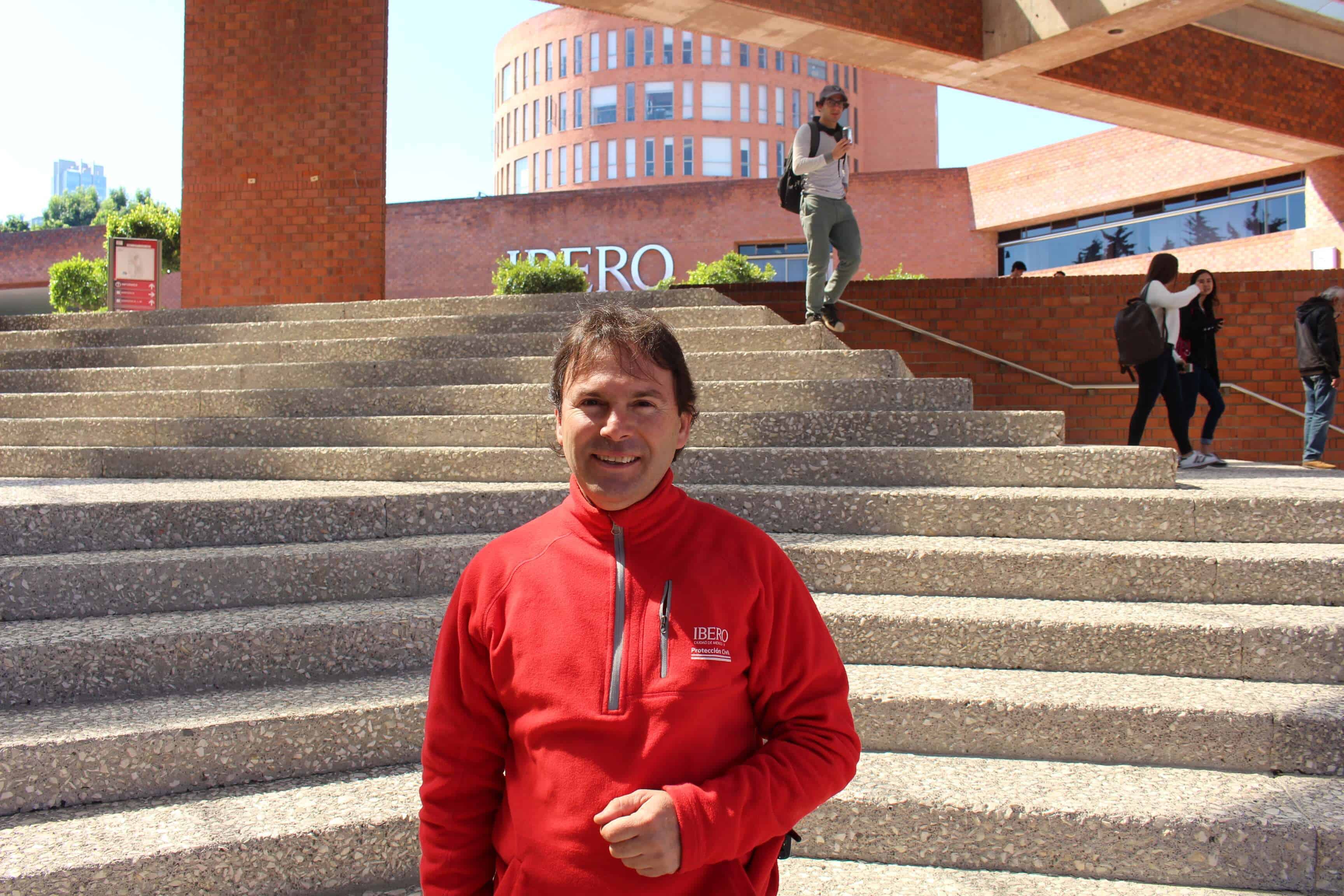 André Desachy, responsable de Protección Civil de la IBERO, platicó que una de las estrategias, quizá la primordial, es acudir a las distintas áreas del campus para resolver dudas acerca de cómo se debe actuar ante una emergencia.