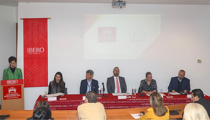 Al concluir la mesa de bienvenida, se llevó a cabo un panel en el que participaron el Dr. Jorge Alberto Schiavon Uriegas, académico del Departamento de Estudios Internacionales, quien profundizó en la generación de conocimiento, formación y vinculación del cuerpo académico; la Dra. María Fernanda Sánchez Contreras, Coordinadora de Espacios Curriculares de Inmersión Social, que ahondó en el paradigma pedagógico ignaciano y detalló el proceso del voluntariado y servicio social; la Dra. Michelle Gama Leyva, Directora del Centro de Estudios Críticos de Género y Feminismos (CECRIGE), la cual detalló la agenda de género de la institución, y la Dra. Cimenna Chao Rebolledo, Directora General de Planeación Estratégica e Innovación, quien ofreció las conclusiones e insistió en la pertinencia de la cooperación entre pares, ante un mundo que enfrenta grandes retos.