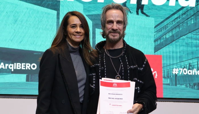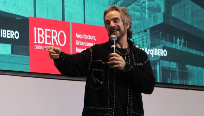 Michel Rojkind toma el micrófono y se pasea con sus pantalones negros rotos por el Auditorio José Sánchez Villaseñor -el más grande de la IBERO- para exponer que la Arquitecturano se trata solo de edificios; se trata de las manos que los construyen, personas que los habitan, las vidas que tocan y lo que pueden devolver a la comunidad.