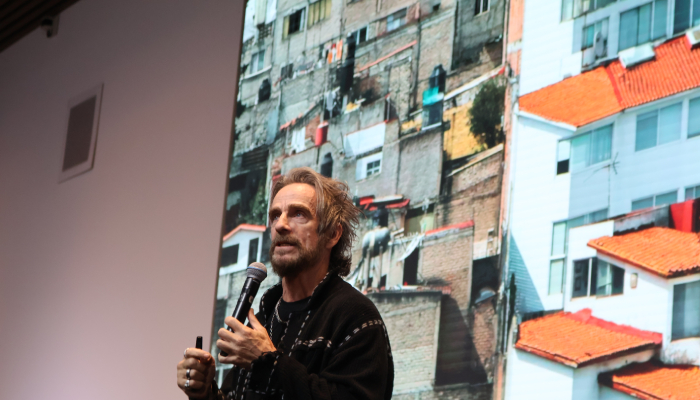El ex baterista de una famosa banda de rock que incluso vino a tocar a la IBERO, fue invitado a nuestra casa de estudios para dar una conferencia sobre la Arquitectura como una herramienta de transformación, profundidad y autenticidad, en un mundo que convive con el espectáculo, el lucro y la gratificación instantánea.