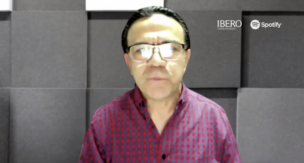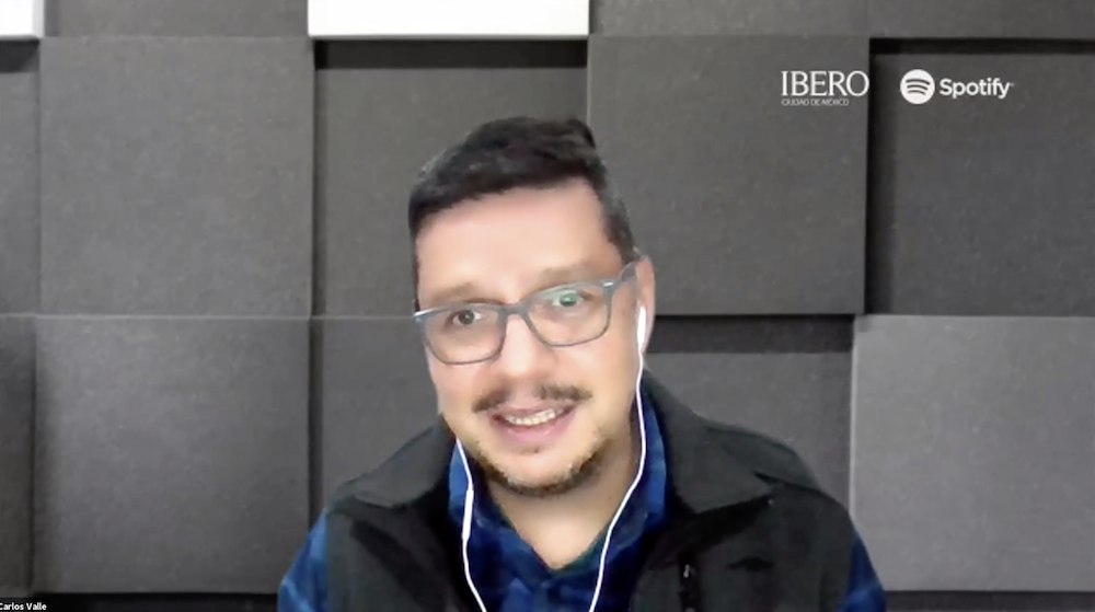 Carlos Valle Cabello, director de Comunicación Institucional de la IBERO, dio la bienvenida a quienes durante un mes tomarán este curso y dijo que a nuestra casa de estudios la llena de emoción esta alianza con Spotify , un gigante digital que "revolucionó y potenció el consumo de música y de podcast, y lo convirtió en una experiencia fácil, entretenida para todas y todos".