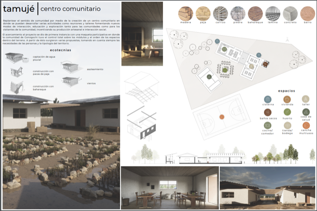 Después de este proceso de diagnóstico y diseño participativo, y de regreso en las aulas de la IBERO, nuestro alumnado desarrolló la propuesta arquitectónica a partir de los planteamientos de los rarámuri y con algunos valores agregados relacionados con el diseño ecológico y de termacultura (uso de materiales locales y de menor impacto ambiental).