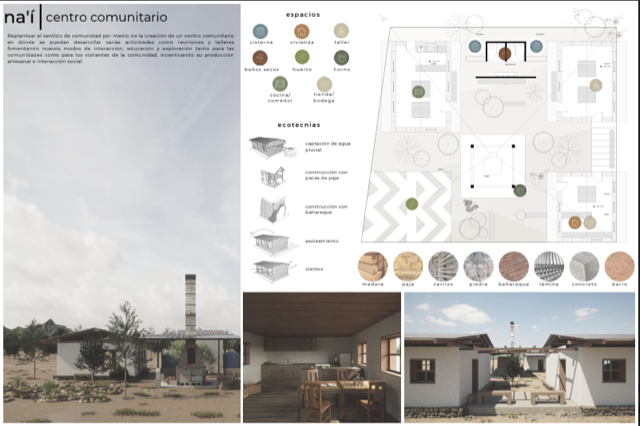 Ambos centros, en cuyo diseño participativo estuvieron inmersos(as) 10 estudiantes de nuestra Licenciatura en Arquitectura, así como mujeres y hombres tarahumaras, tienen el propósito de conservar el territorio, cultura y saberes tradicionales rarámuri, de tal manera que se propicie el encuentro comunitario, se fortalezca la producción tradicional de artesanía y se desarrollen los potenciales locales mediante el intercambio de saberes.
