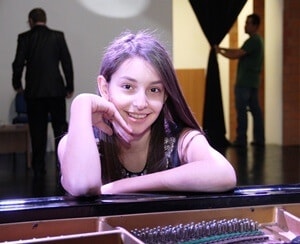 La pianista de sólo 12 años de edad, la solista más joven en tocar un concierto completo con orquesta, deleitó a las autoridades académicas, docentes, alumnos, exalumnos y empleados asistentes, con su interpretación de composiciones de Bach, Beethoven, Chopin, Liszt, Rajmáninov y Filippenko.
