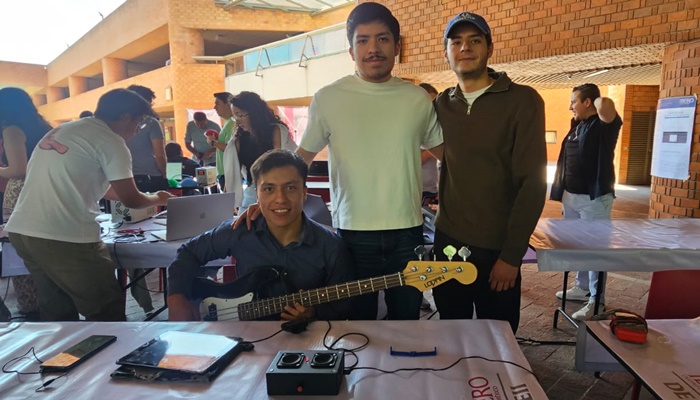 Carlos Ortega, Alonso Cruz y Emilio Acuña dieron cuenta de su diseño de monitor amplificador mini para el uso de bajo eléctrico, que permite a la gente dedicada a la música hacer uso de un dispositivo fácil de transportar y que, al mitigar el nivel de sonido, evita la contaminación auditiva.