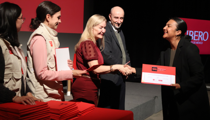 Para clausurar este magno evento, el primero de su tipo en Latinoamérica, estuvieron presentesla Mtra. Erika Liliana Enríquez Montaut, Directora de Educación Continua;Cynthia Hudson, VP senior y directora general de CNN en español; el Dr. Juan Carlos Henríquez Mendoza, S.J., Director del Departamento de Comunicación de la IBERO, y el Vicerrector Académico de la IBERO, el Dr. Alejandro Anaya Muñoz.