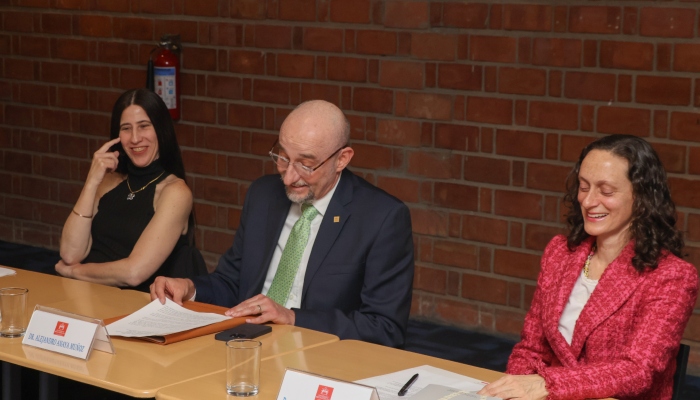 • De izquierda a derecha: Dra. Tania Favela; Dr. Alejandro Anaya, Vicerrector; y Dra. Cecilia Salmerón, Directora del Departamento de Letras