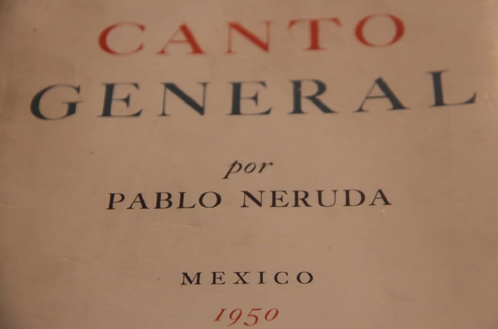 ElCanto Generalle llevó a Neruda 12 años escribirlo, desde la muerte de su padre en 1938, cuando comenzó a redactar unCanto Generalde Chile que se publicó en México en 1940 en circunstancias muy favorables porque Pablo era diplomático aquí, donde vivían sus amigos del exilio español, entre ellos Miguel Prieto, que se hizo cargo de esa edición. En ese tiempo, Neruda también conoció en México al ingeniero Enrique de los Ríos (padre de la Doctora Patricia), quien se convirtió en su amigo íntimo.