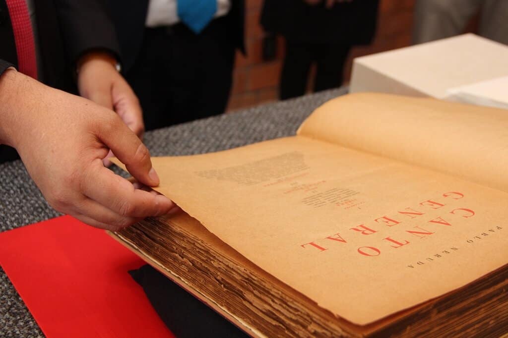 El maestro Luis Inclán Cienfuegos, coordinador de Acervos Históricos de la BFXC, señaló que la primera edición delCanto Generales muy importante por tres aspectos: las circunstancias en que se escribió y se publicó, su diseño editorial como libro y su propio valor como obra literaria; que hacen de ésta un objeto sumamente valioso en términos editoriales, literarios e históricos.