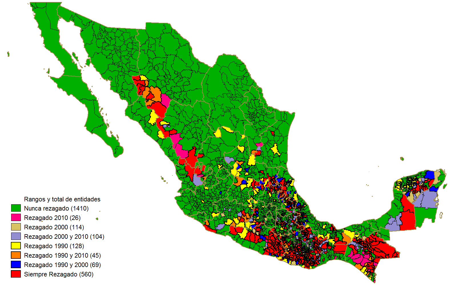 En todos los casos analizados, los estudios cualitativos para México, Chile y Perú identifican a la falta de cohesión social, a la existencia de clases políticas de tipo clientelar, a la debilidad del Estado de Derecho, a la ausencia de élites emergentes, al acceso desigual a mercados y a programas públicos, como factores que fomentan y mantienen en el tiempo las desigualdades espaciales.