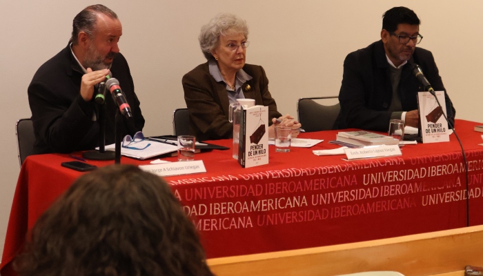 Lajous Vargas estuvo acompañada por el Dr. Jorge A. Shiavon Uriegas, académico, y por el Dr. Luis González Villanueva, director del Departamento de Estudios Internacionalesde nuestra IBERO, para presentar su libroPender de un hilo: detrás de las negociaciones del T-MEC, que contiene experiencias que pudieran funcionar para negociar con Trump en su versión 2.0.