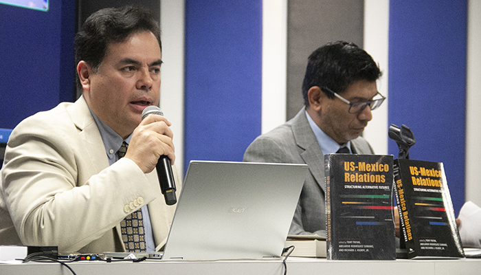 El Dr. Rodríguez Sumano indicó que en el libroUS-Mexico Relations: Structuring Alternative Futuresse detallan los desafíos estructurales entre México y EU, así como los elementos de desconfianza que permean en la relación bilateral y acotó que está en las juventudes, las universidades y la sociedad de ambas naciones la oportunidad de enfrentar los retos extraordinarios que se tienen con el próximo gobierno de Donald Trump.