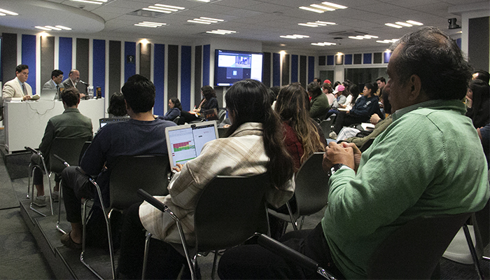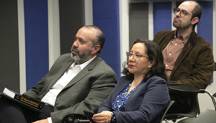 La bienvenida estuvo a cargo de la Maestra (Mtra.) Citlali Ayala Martínez, Directora Ejecutiva de la AMEl, y del Dr. Luis González Villanueva, Director del Departamento de Estudios Internacionales (DEI); mientras que la presentación del libro se llevó a cabo por el Dr. Abelardo Rodríguez Sumano; la Dra. Valeria Marina Valle y el Dr. Jorge A. Schiavon Uriegas, del claustro académico del DEI. También estuvieron presentes el Mtro. Tomás Martínez Sánchez, de la UNAM, y Dr. Richard J. Kilroy Jr., residente no académico en la Universidad de Rice.