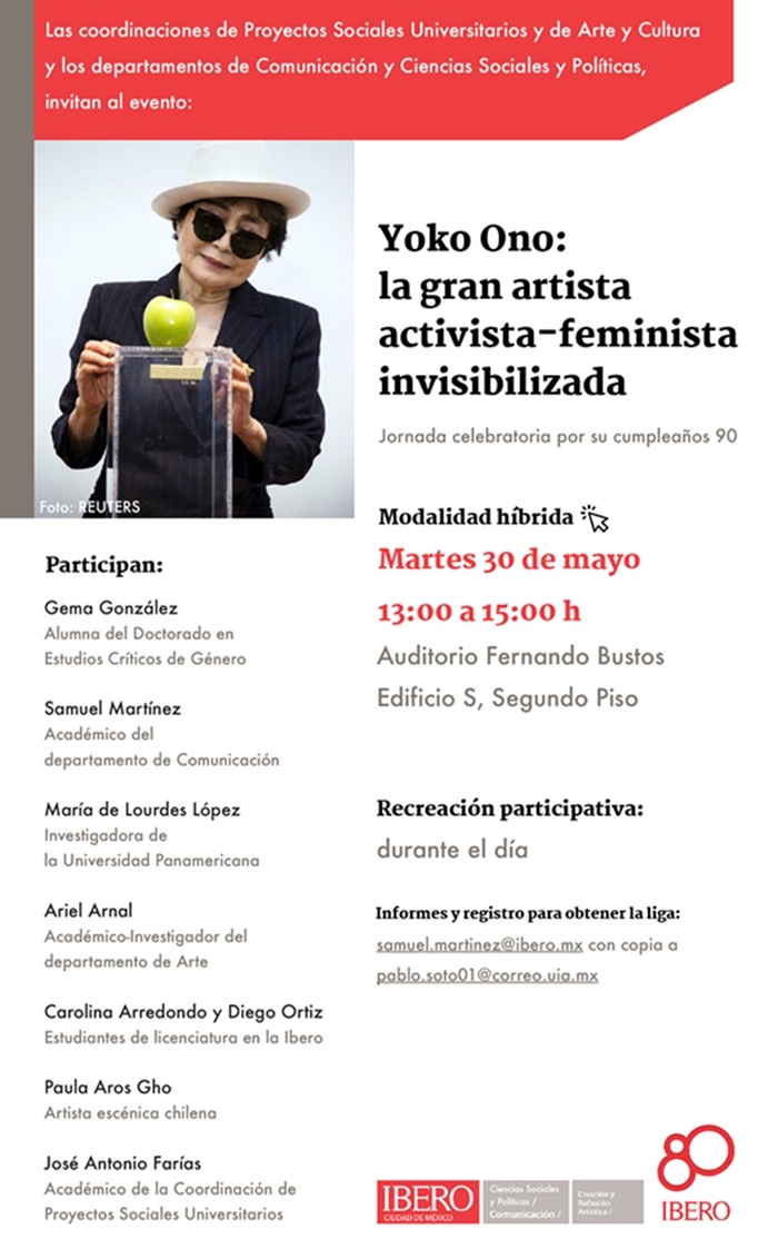 Yoko Ono es una persona increíble, alguien que hace más de 70 años desafió al orden patriarcal y machista japonés. Pero antes hay que decir que su vida quedó marcada desde niña por las bombas atómicas sobre Hiroshima y Nagasaki. Ella fue la primera mujer matriculada en la facultad de filosofía en la universidad en que inició estudios universitarios en Tokio.