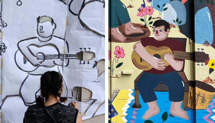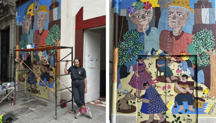 "En esa esquina estuve ocho días de sol a sol, tuve convivencia directa y cercana con personas en situación de calle. El mural es una memoria muy dolorosa sobre dos personas (Javier y Joaquín) con esta grandeza en medio de esta maquinaria capitalista. Las comunidades o personas en situación de calle viven diferente a nosotros", señala.