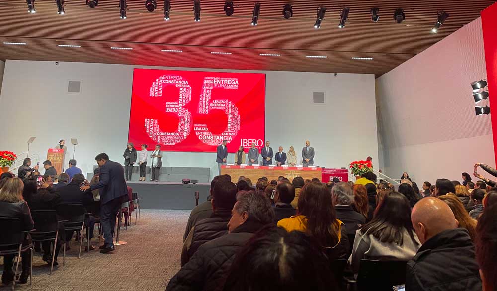 A pesar del frío, la lluvia y el tránsito provocado por las obras del tren México-Toluca y la línea 3 del Cablebús, decenas de familias arribaron a la Universidad Iberoamericana en punto de las 11 de la mañana de este lunes 11 de diciembre para acompañar a sus seres queridos, quienes fueron homenajeados con los “Reconocimientos de Antigüedad Laboral 2023”, que otorga anualmente la IBERO a sus trabajadores y trabajadorasque cumplen 10, 15, 20, 25, 30 y 35 años de servicio.