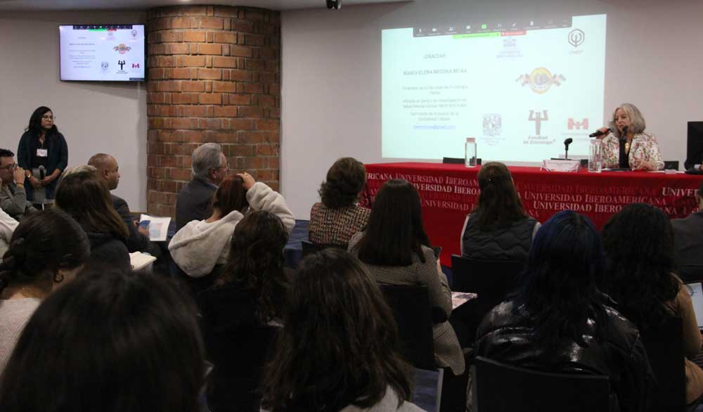 El primer reto que enfrenta México, es que “si juntamos salud mental y drogas, estamos en la media mundial de incidencias entre la población; sin embargo, nos encontramos en el penúltimo lugar en cuanto a acceso a tratamientos y eso nos hace necesitar nuevas políticas para poder realmente proteger a las personas”, explicó la Dra. Medina ante estudiantes que llenaron el Auditorio  de la Biblioteca Francisco Xavier Clavigero de la IBERO.