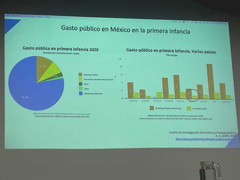No obstante la importancia de la nutrición materno infantil, en México, en términos de salud sólo se destina 2.4% de todo el gasto público; además, el presupuesto que se destina a la primera infancia en nuestro país es de los más bajos de Latinoamérica, aquí abajo compartimos una tabla compartida por la Dra. Ancira durante su ponencia.