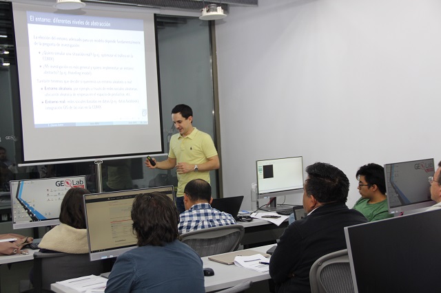 La intención es que al final de los cinco días del curso (del 17 al 21 de junio), que se lleva a cabo en el GeoLab, el laboratorio de georreferenciación de la IBERO, las y los docentes y estudiantes que lo toman sean capaces de hacer un modelo basado en agentes, y si es de su interés, incluirlo en sus investigaciones académicas.