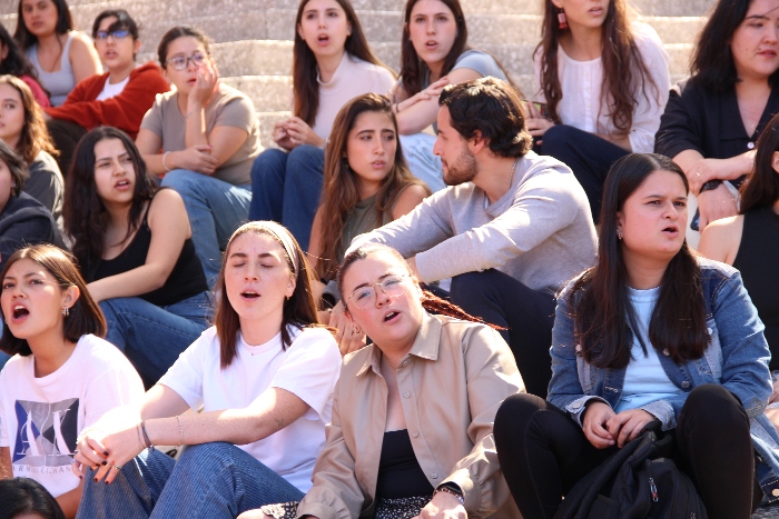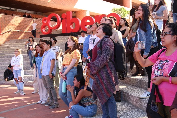 Al encuentro denominado Activación Justicia por Ayotzinapa, organizado por el Programa de Derechos Humanosy el Departamento de Ciencias Sociales y Políticasde la IBERO, junto con Amnistía Internacional, asistieron tres jóvenes egresados de Ayotzinapa, compañeros sobrevivientes de los 43 normalistas desaparecidos. Las y los estudiantes de la Universidad Iberoamericana reunidos en la explanada central también exigieron justicia por los tres jóvenes normalistas asesinados la noche que desaparecieron sus compañeros, en 2014.