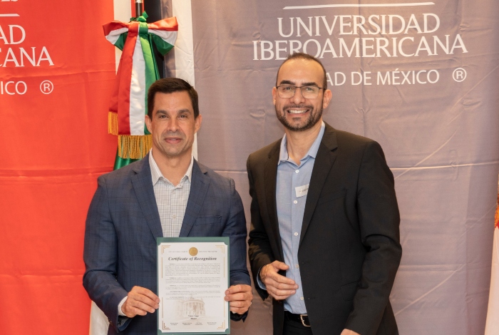 Vince Lago, Alcalde de la Ciudad de Coral Gables, Florida, entregó al Dr. Arriaga un reconocimiento por su destacada trayectoria como académico y defensor de derechos humanos, en una velada a la que también asistieron Elba Hentschel, presidenta de #SomosIbero Florida y representante de #SomosIbero en el mundo, y las autoridades del Consulado General de México.