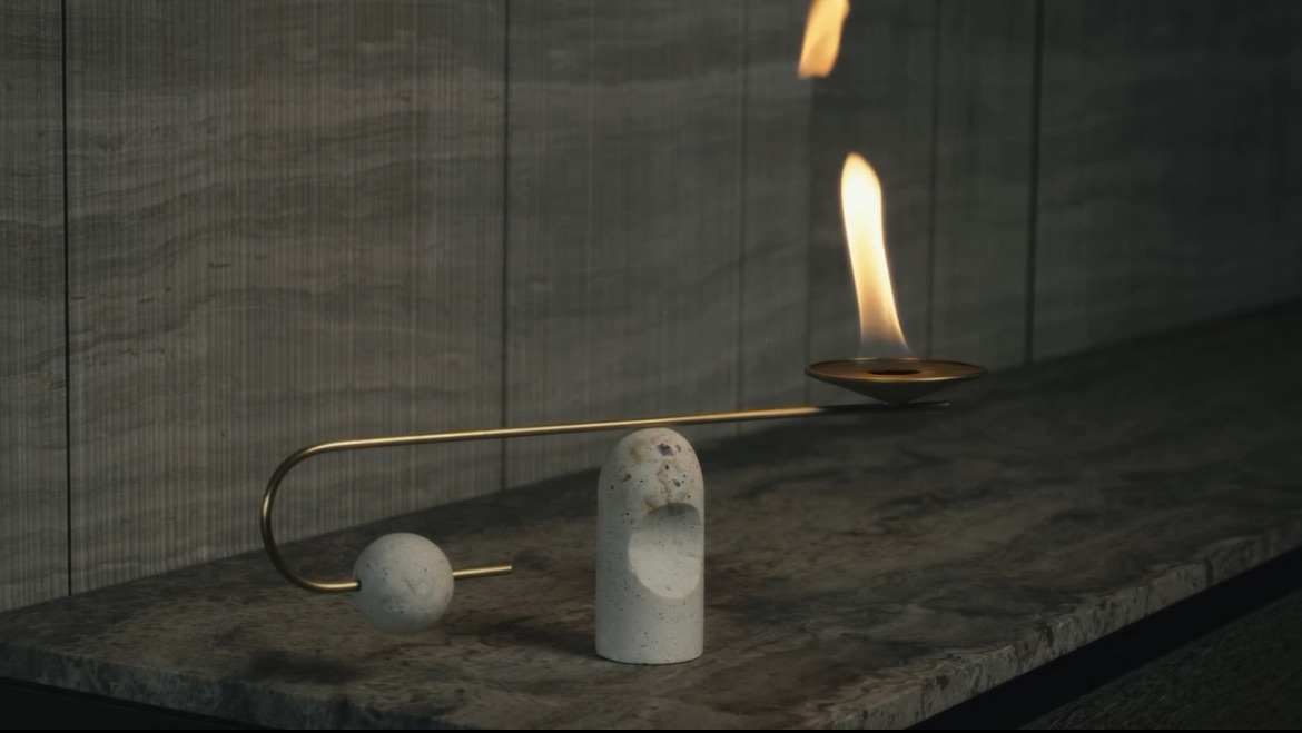 Su proyecto se inspira en el culto al fuego como centro de equilibrio de la diversidad cultural mexicana. Basado en festividades milenarias y procesos tradicionales. Inspirado en este concepto, se creó un arte/objeto con geometría primitiva y materiales artesanales.