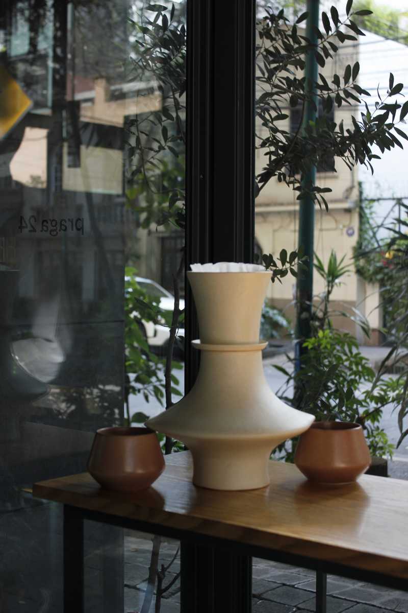 Su cafetera de cerámica fusiona la tradición artesanal con un diseño inspirado en el modernismo mexicano, resaltando la pureza de las formas geométricas y la elegancia de los sólidos de revolución. El concepto central del proyecto celebra el vínculo de pareja, una representación simbólica del acto del acto de compartir.