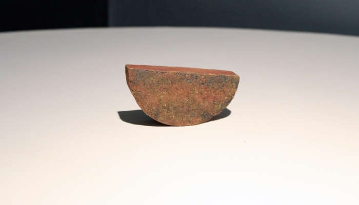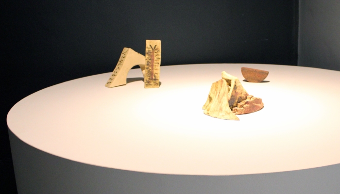 | Entre las piezas hay un reloj lunar de rampas, con huellas de escarificaciones e insectos fosilizados. |