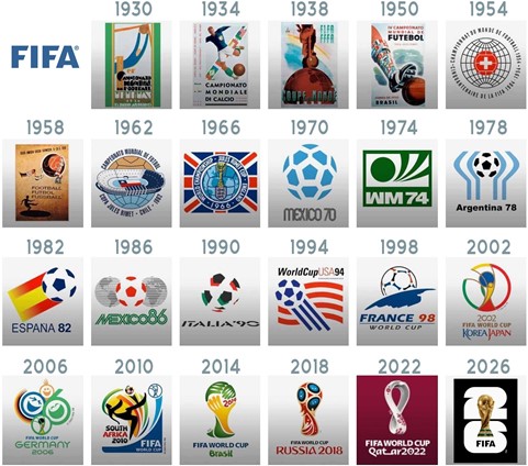Antes de 1970 el identificador oficial era un cartel, de ahí en adelante el logotipo fue un emblema que ha sido marcado por una tendencia en los años siguientes (uso de balón como elemento central, uso de copa recientemente, etc) ¿ Estaremos frente al futuro de logos mundialistas, con uso de fotografías y donde lo más importante es el año cuando ocurre? Espero que no.
