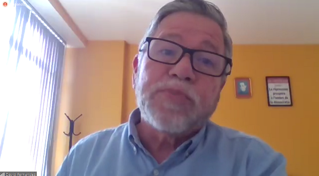 Para contextualizar su disertación, en la que estableció tres presupuestos, Fernández Dávalos señaló que la pandemia de COVID-19 ha profundizado los problemas que ya se tenían desde antes, es decir, desconfianza en la democracia, reducción del Estado nacional y de todo lo público, y aumento de la pobreza y de las diferencias de clases. Además, se agravó la violencia de género y la violencia intrafamiliar, y se añadieron nuevos problemas, como los sanitarios.