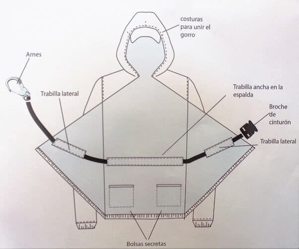 Con el fin de no evidenciar a sus portadores, todas las prendas fueron confeccionadas en color negro, y sin cierres o partes metálicas reflejantes, señaló una de las alumnas participantes, quien añadió que las piezas cuentan con tela impermeable en el exterior y tela polar en el interior. En el caso de la chamarra, ésta incluye bolsas ocultas y un arnés que permite que el usuario se enganche a la estructura del tren durante las noches y así evitar su caída durante las horas de sueño, un problema muy común entre los migrantes.