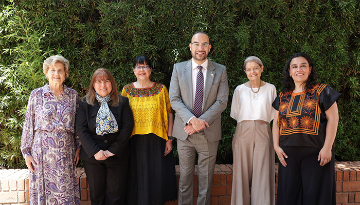 | De izq. a der.: Dr. Luis Arriaga Valenzuela, S.J., Lic. Rebeca Montemayor, Mtra. Lucila Servitje Montull, Dra. Christa Godínez Munguía, Mtra. María del Carmen Servitje Montull y Lic. Mariana Gómez Álvarez Icaza. Foto: Alberto Hernández. |