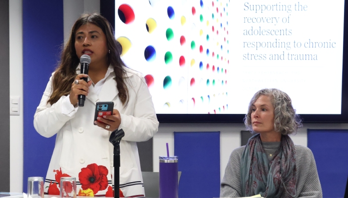 En el Aula Martín Buber, alumnos y alumnas de nuestra casa de estudios dialogaron con la especialista en Psiquiatría y Ciencias del Comportamiento sobre los retos para trabajar con adolescentes que han tenido experiencias traumáticas y prolongadas causadas por el abuso o la negligencia infantil durante periodos vulnerables de desarrollo.