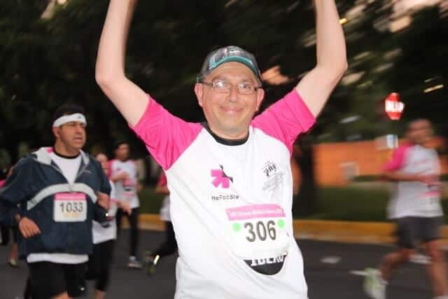 Vistiendo la mayoría las camisas blancas con vivos rosas de la XIII Carrera Atlética IBERO, los corredores iniciaron a oscuras, pero con los ánimos encendidos, el temible ascenso desde la IBERO hasta el centro comercial, para retornar a la universidad, los que se inscribieron a 5k; o iniciar la segunda vuelta, aquellos que decidieron participar en 10k.