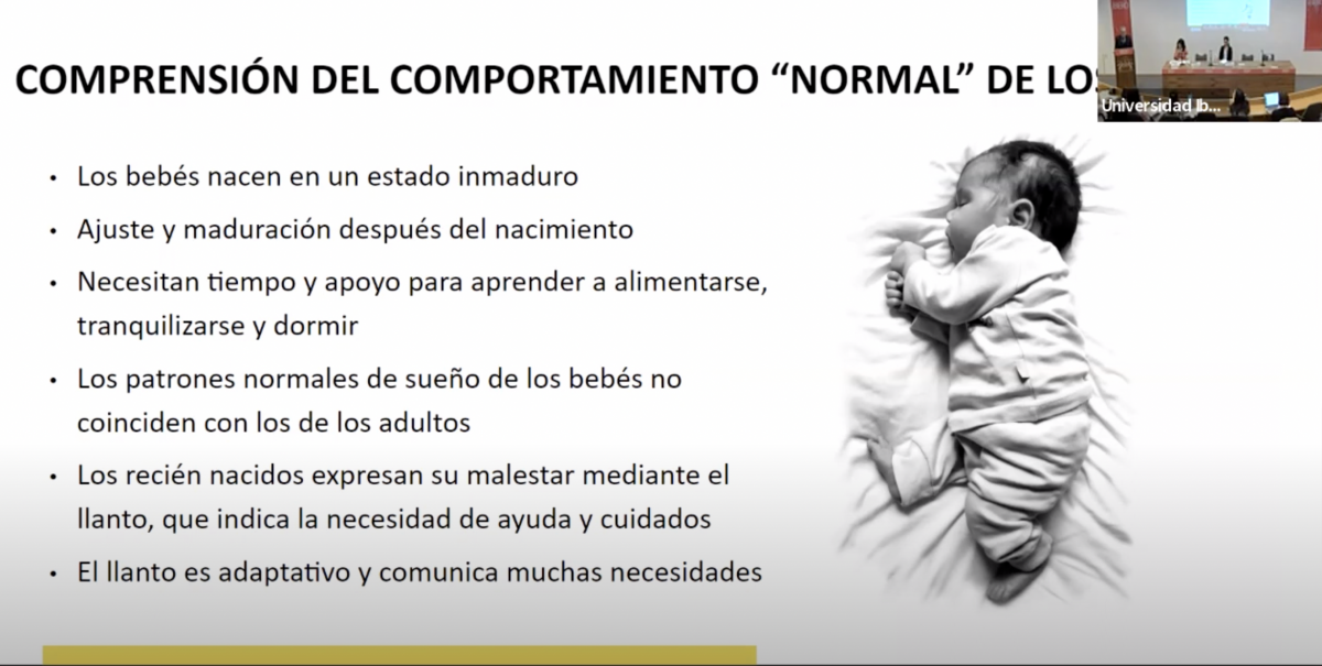 Los patrones de sueño de las y los bebés, como todos sabemos, no se alinean con los patrones que tenemos los adultos, los recién nacidos expresan su malestar a través del llanto y esto señala la necesidad de ayuda y cuidado; por lo tanto, el llanto es adaptativo, comunica muchas necesidades, no sólo la del hambre.
