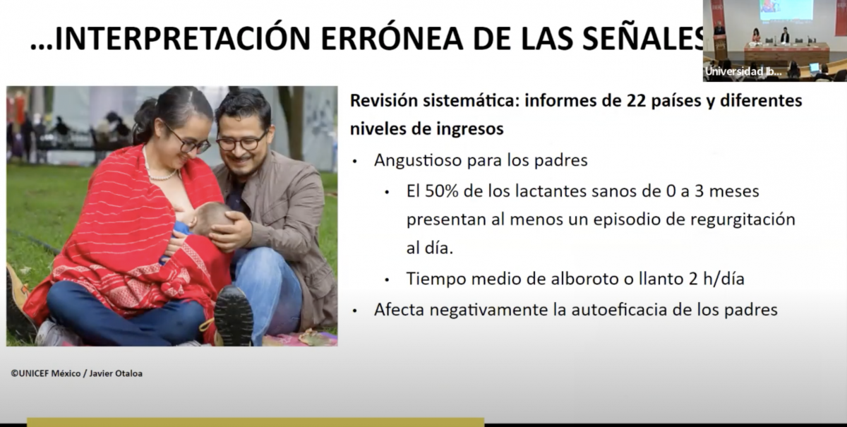 El reto para las madres, parejas y familias está en poder entender y leer bien esas señales durante el periodo de tiempo en el que ellas y ellos están muy cansados y ansiosos, en una revisión sistemática de literatura de 22 países de diferentes niveles de ingresos, documentamos que entre los lactantes sanos, los comportamientos de llanto y regurgitación son muy comunes, al menos 50% de los bebés tienen episodios de regurgitación.