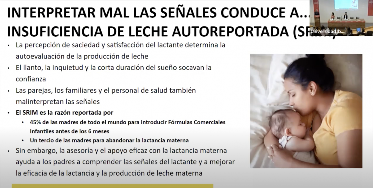 Al final de su presentación, el Dr. Rafael Pérez Escamilla mencionó a México entre los países con un panorama positivo en la mejora de las tasas de lactancia materna; al respecto, la Dra. Mónica Ancira, académica del Departamento de Salud, quien lidera el Observatorio Materno Infantil (OMI)de la IBERO, señaló hace unas semanas durante el foro en conmemoración del “XXV Día de la Nutrición Infantil”, que las cifras han avanzado, pero aún estamos lejos de las recomendaciones de la OMS para 2025.