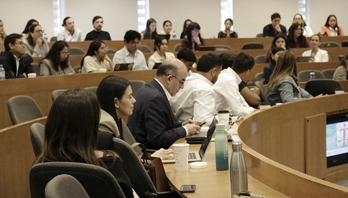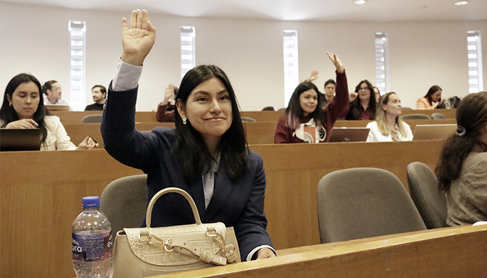 “Nada de lo chiquito que están haciendo como estudiantes es chiquito; puede ser transformador”, dijo Puentes Riaño al estudiantado, para posteriormente ejemplificar con dos casos específicos de su carrera profesional, en los que el derecho fue utilizado para el litigio climático y para abogar por los derechos humanos y un medio ambiente sano.