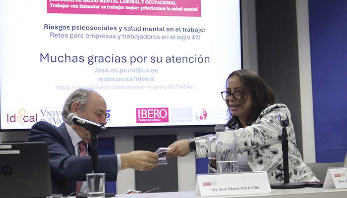 La salud mental laboral se ha convertido en uno de los principales desafíos del siglo XXI, advirtió el Dr. José María Peiró, investigador de la Universidad de Valencia y miembro de la Academia de Psicología de España, durante su conferencia magistral“Riesgos psicosociales y salud mental en el trabajo: Retos para empresas y trabajadores en el siglo XXI”, en el marco de las Jornadas de Salud Mental, Laboral y Ocupacional, realizadas en la Universidad Iberoamericana Ciudad de México.